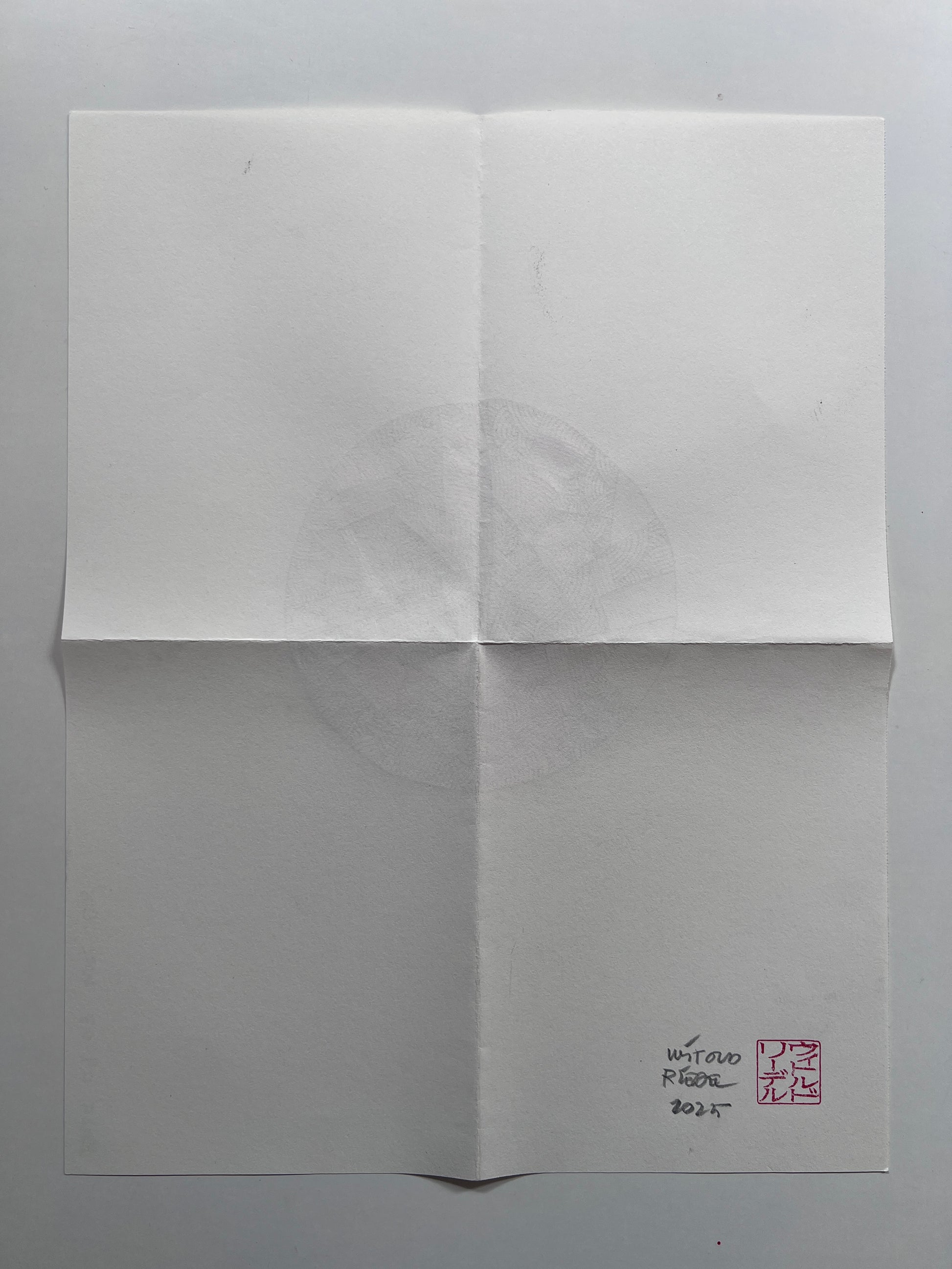 Mail art drawing (36x28cm when open, 18x14cm when mailed) drawn on 100g soft paper using pencil. This one is from the most recent mail art series.