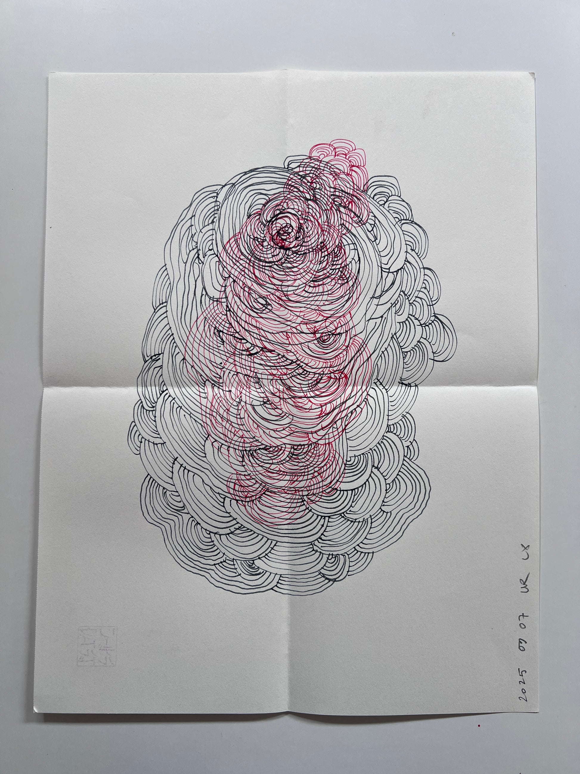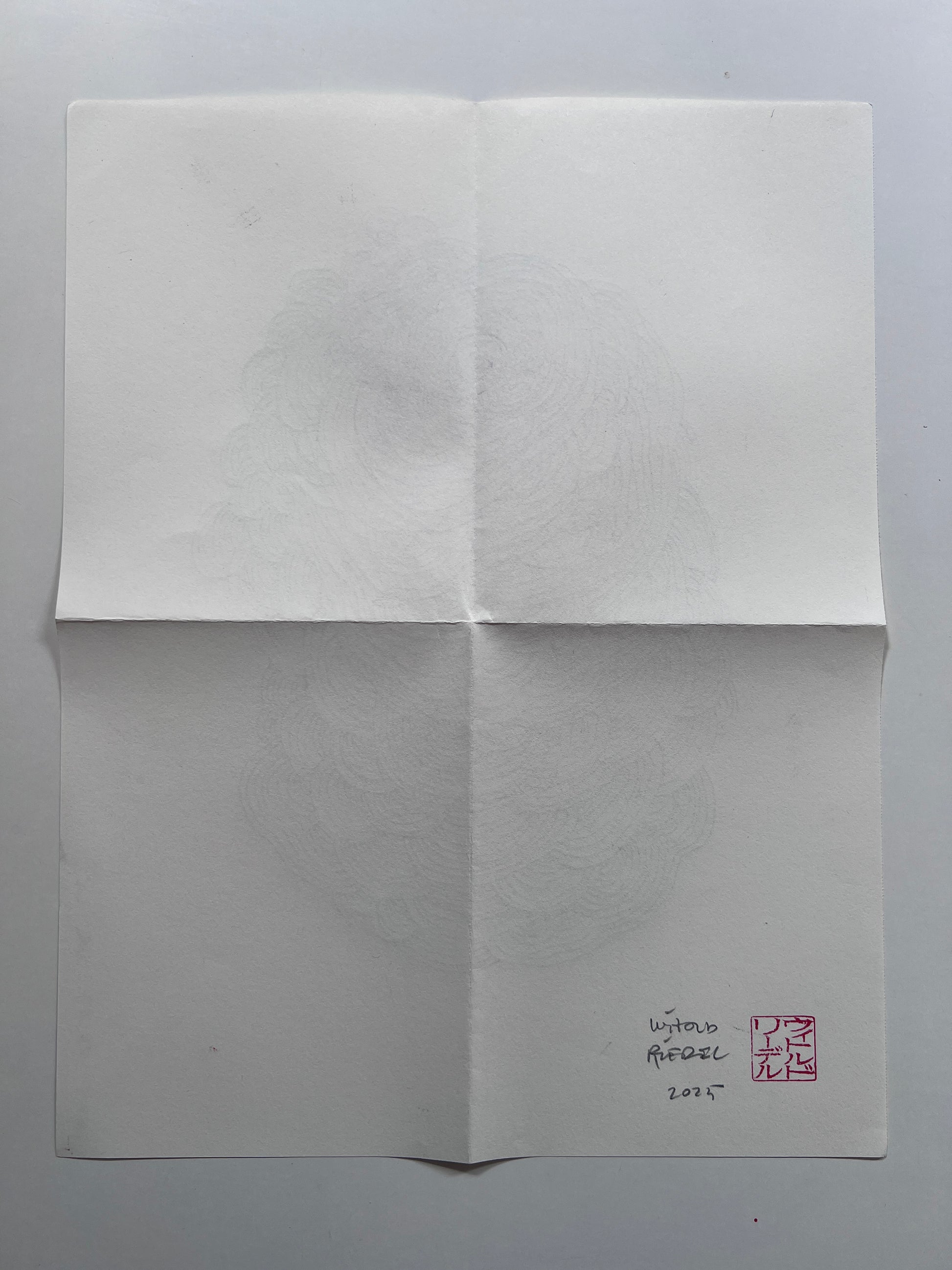 Mail art drawing (36x28cm when open, 18x14cm when mailed) drawn on 100g soft paper using pencil. This one is from the most recent mail art series.