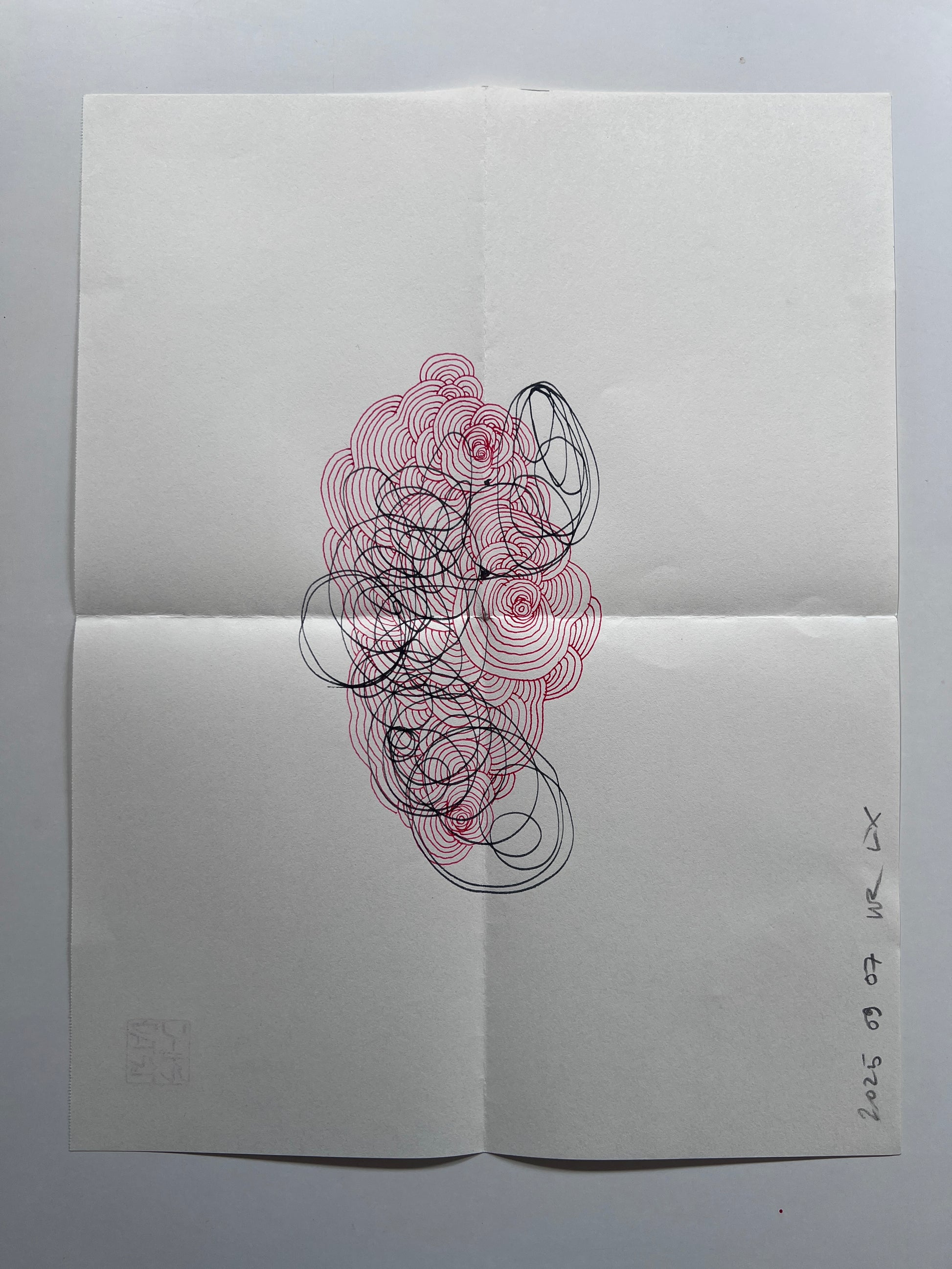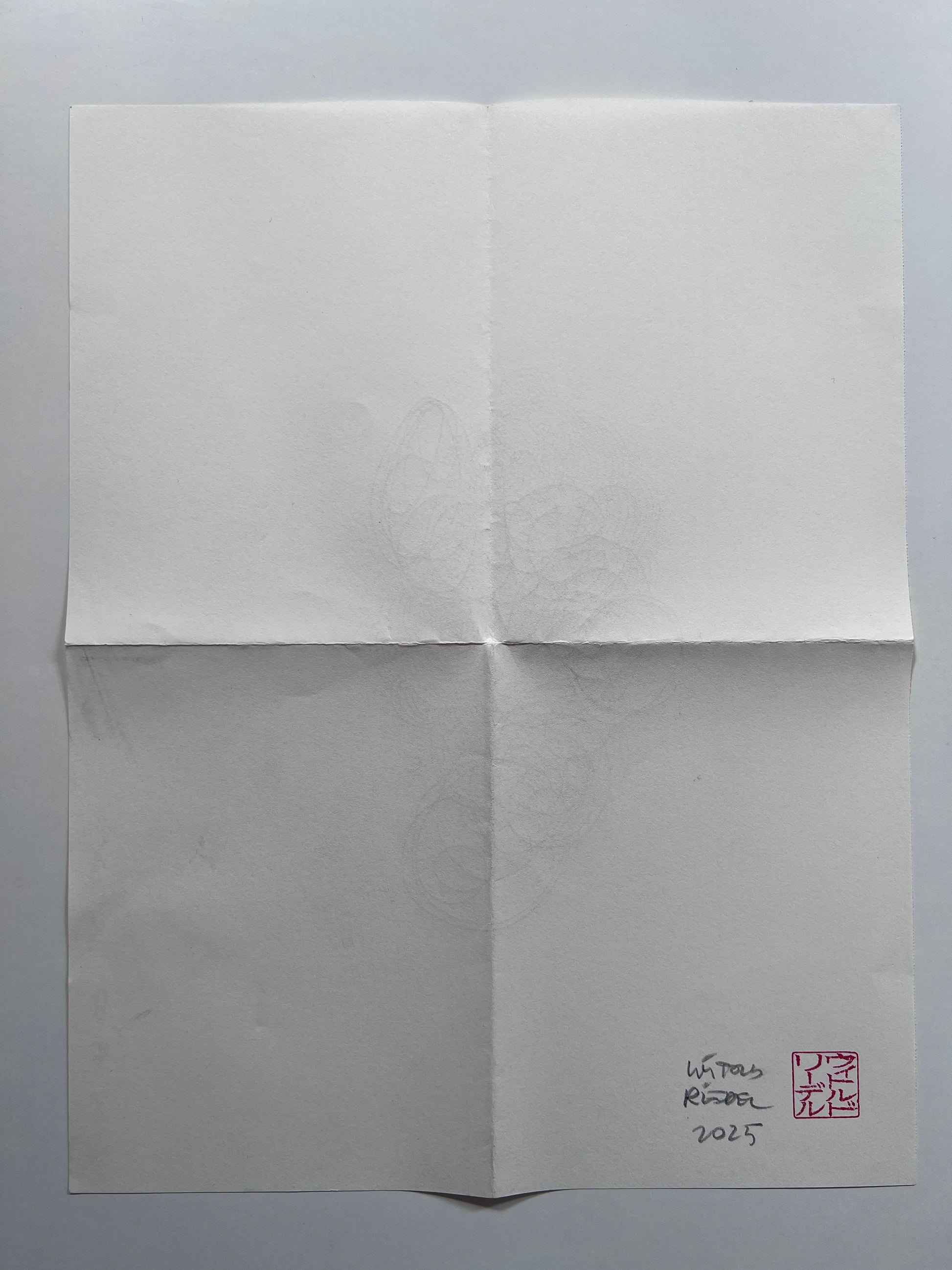 Mail art drawing (36x28cm when open, 18x14cm when mailed) drawn on 100g soft paper using pencil. This one is from the most recent mail art series.