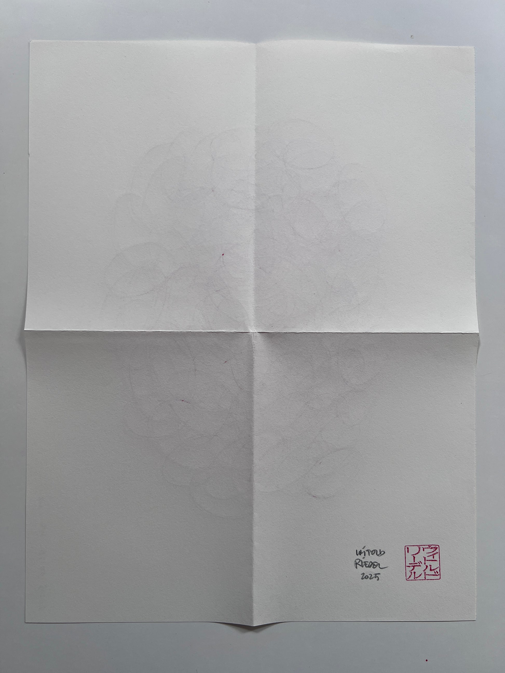 Mail art drawing (36x28cm when open, 18x14cm when mailed) drawn on 100g soft paper using ink. This one is from the most recent mail art series.
