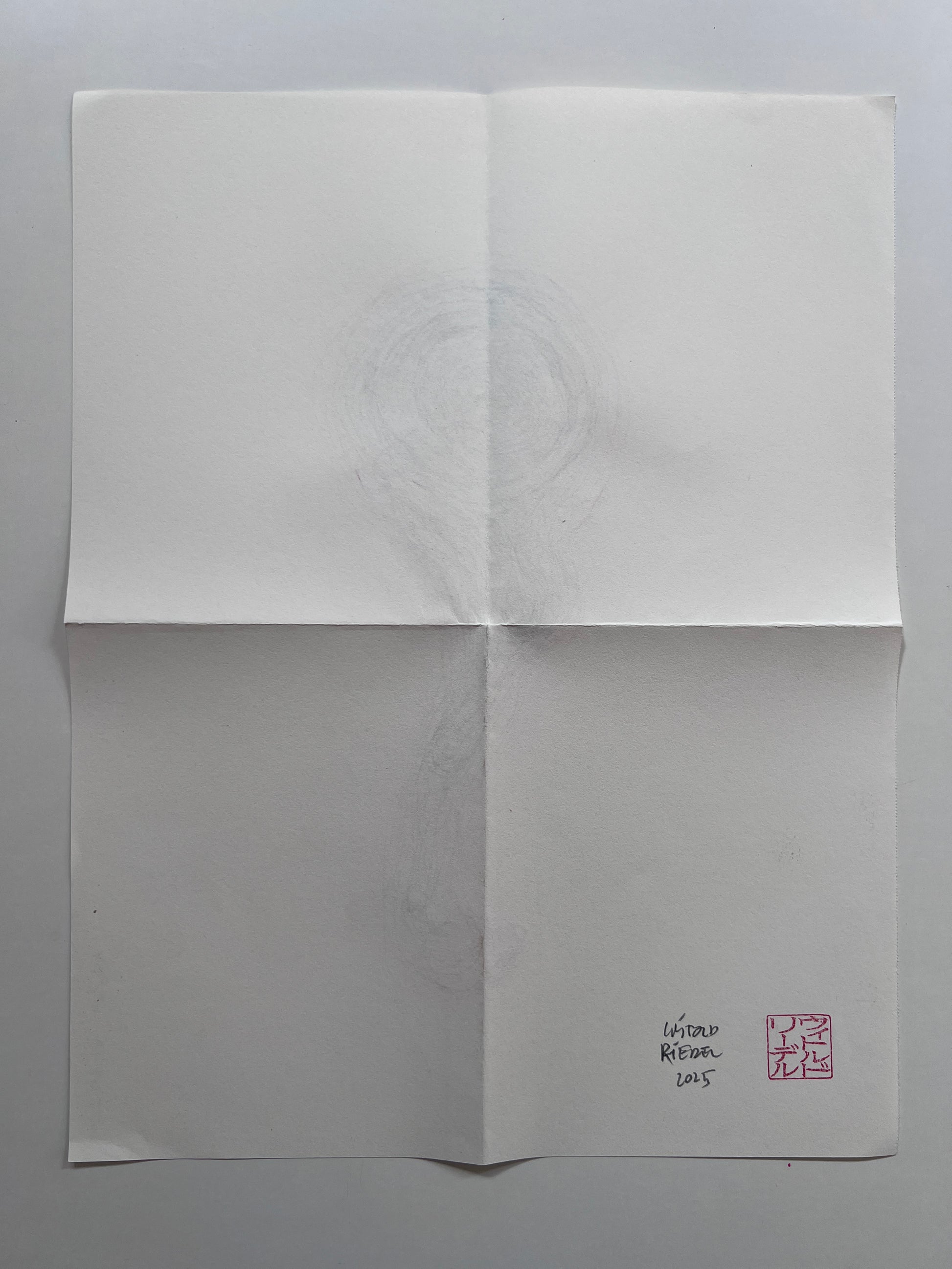 Mail art drawing (36x28cm when open, 18x14cm when mailed) drawn on 100g soft paper using ink. This one is from the most recent mail art series.