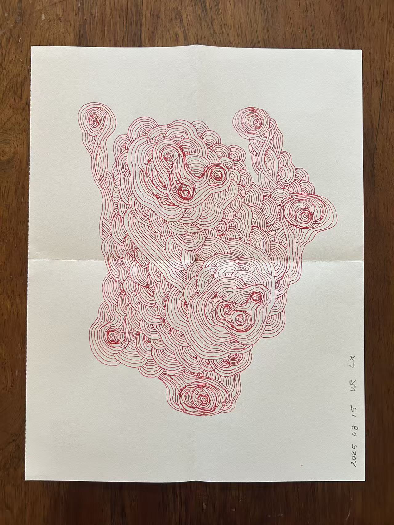 Mail art drawing (36x28cm when open, 18x14cm when mailed) drawn on 100g soft paper using ink. This one is from the most recent mail art series.