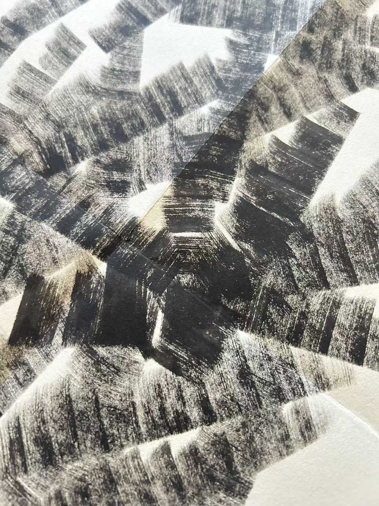 Mail art drawing (36x28cm when open, 18x14cm when mailed) drawn on 100g soft paper using ink made of pollution. This one is from the most recent mail art series.
